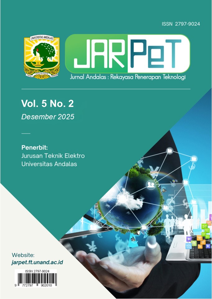 Jurnal Andalas: Rekayasa dan Penerapan Teknologi (JARPeT) Vol 5 No 2, Desember 2025 consists of 8 articles written by 41 authors from 7 institutions: Politeknik Negeri Padang, Universitas Batanghari, Universitas Adiwangsa Jambi, Universitas Akprid Indonesia, Universitas Andalas, Universitas Negeri Padang, Panti Asuhan Ashabil Rayyan,